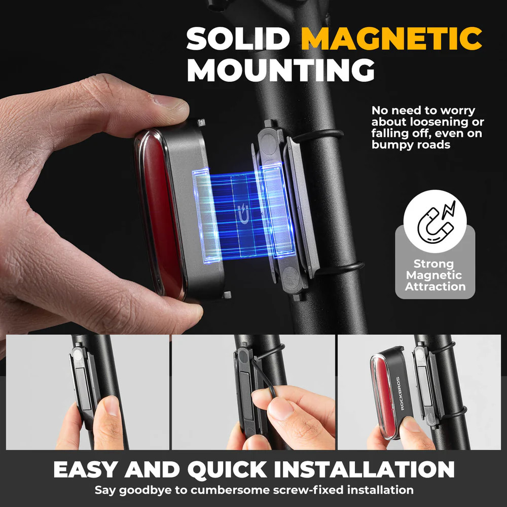 • Magnetische und stabile Befestigung: Das ROCKBROS Rücklicht wird magnetisch befestigt, ganz ohne Werkzeug. Der starke Magnet hält sicher, auch auf unebenem Gelände.