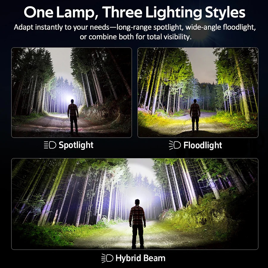3 Lichtmodi: Flutlicht, Fernlicht, kombiniert